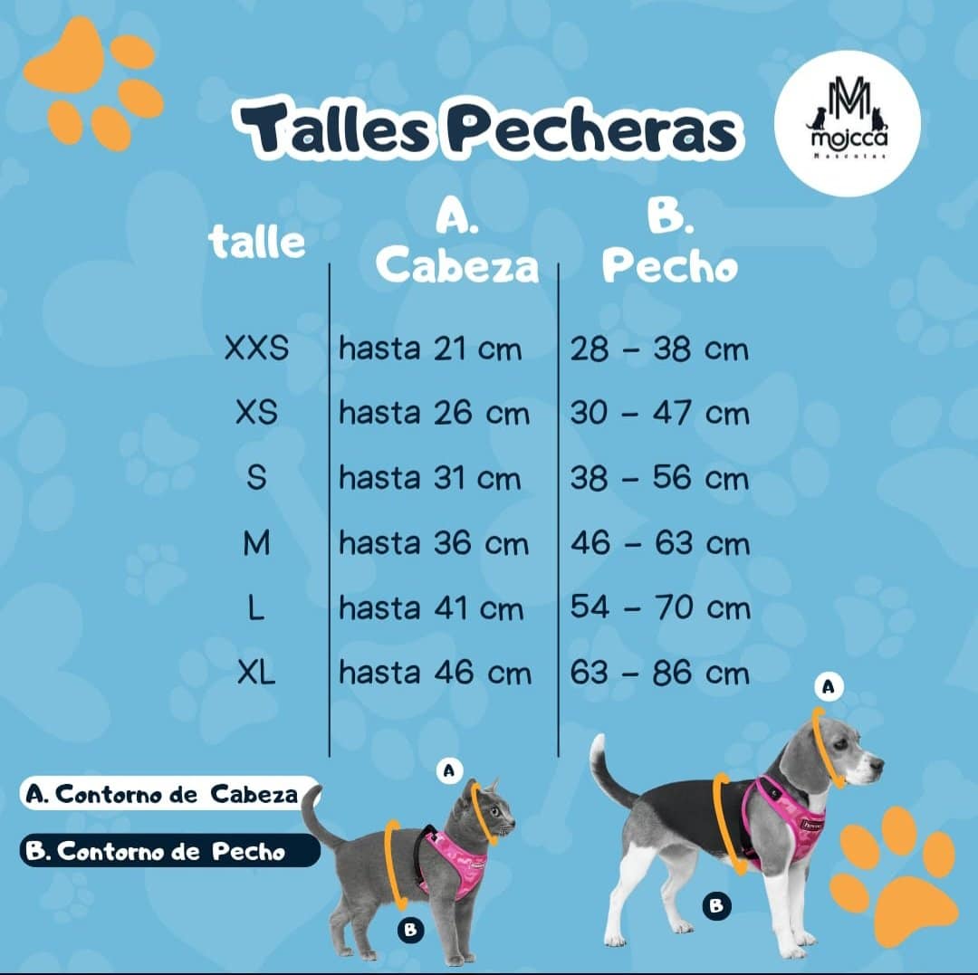 Este diseño de pechera evita tirones en la tráquea como en la laringe ubicadas en el cuello de la mascota. Son regulables únicamente en la parte del pecho. No se regula la circunferencia del cuello para total seguridad, esto hace que no se lo puedan sacar de manera intencional ni que se les salga en los tirones del paseo.